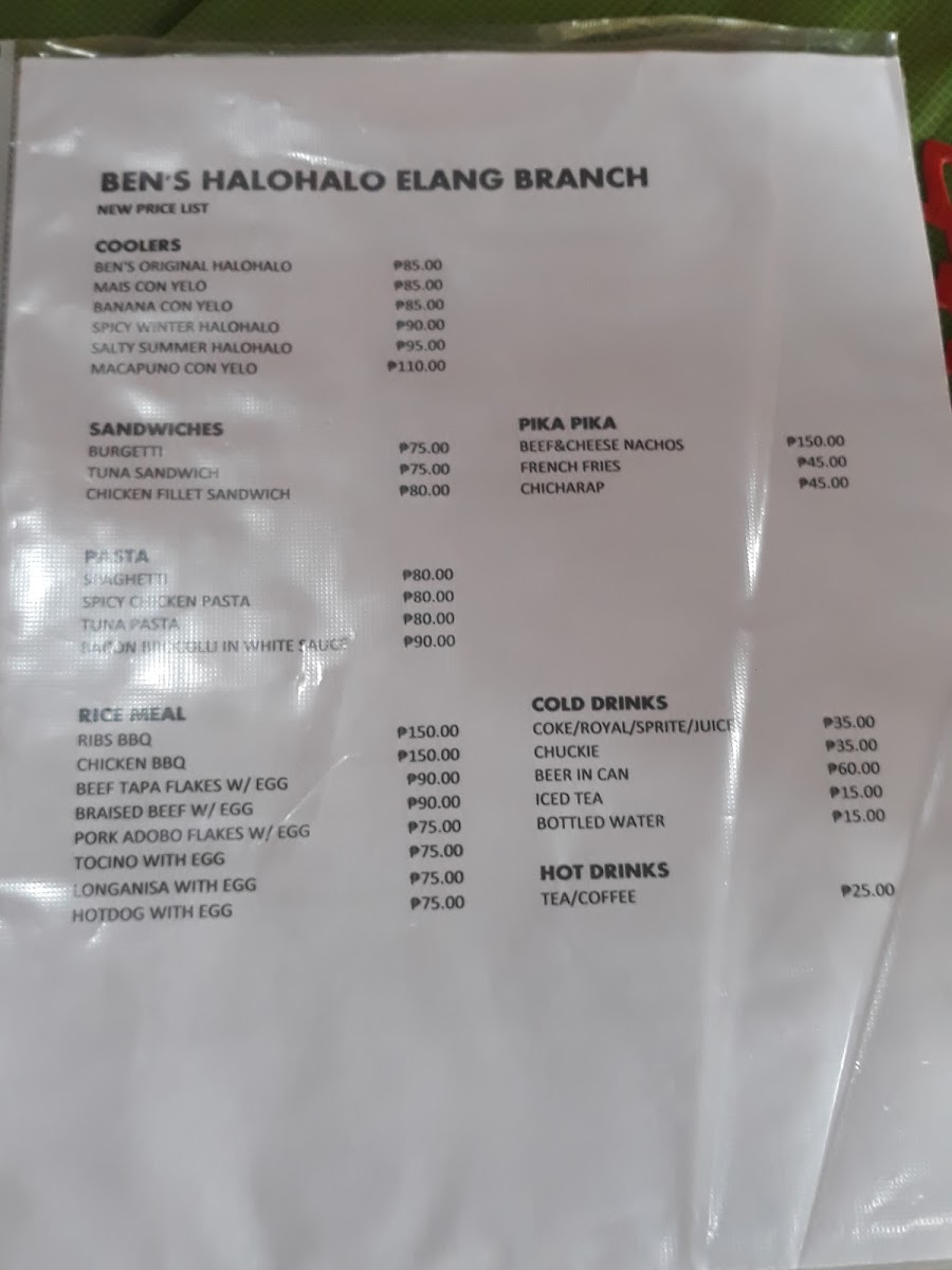 “ Good tasting foods at affordable prices. Serving size may not be for 'big eaters' though but one can order another without hurting the pocket. This resto offers a variety of meals and snacks aside from their halo-halo specialty. ”
